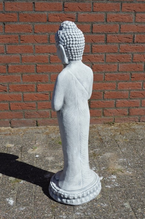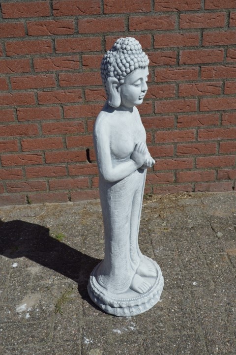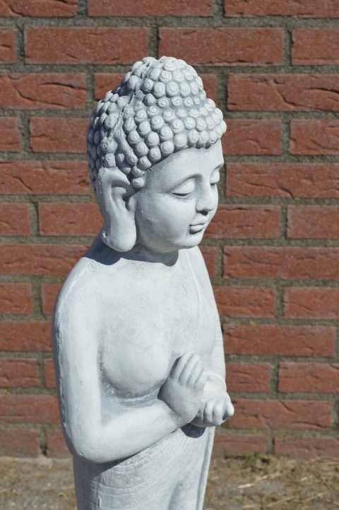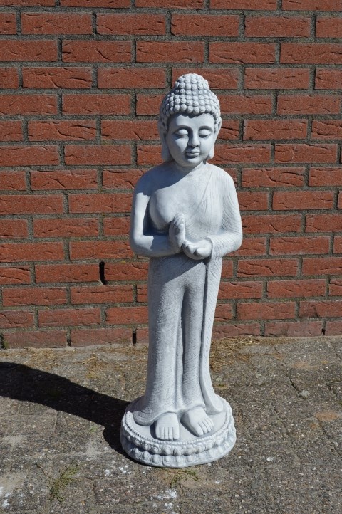 Dit grote betonnen beeld van Shiva toont de god in een sierlijke, staande houding en maakt van elke tuin een bezienswaardigheid. Door het formaat komt dit beeld prachtig tot zijn recht op een kleine verhoging of aan de rand van een vijver. Het beton krijgt na verloop van tijd een doorleefde uitstraling, wat het beeld alleen maar meer karakter geeft. Een indrukwekkend tuinbeeld dat rust, spiritualiteit en stijl toevoegt aan elke buitenruimte.