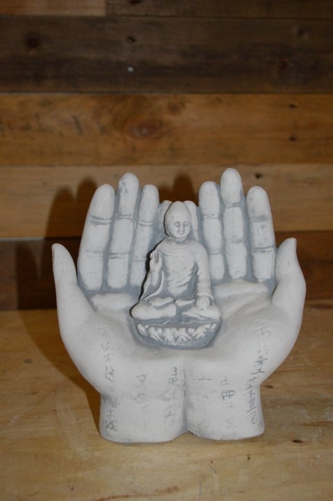 shiva in handen is een bijzonder spiritueel beeldje waarin de god Shiva liefdevol wordt gekoesterd tussen twee beschermende handen. Dit betonnen beeld straalt rust en devotie uit en wordt vaak geplaatst in een stille hoek van de tuin of het huis, vergezeld van een kaarsje. Perfect om bij te mediteren of even tot bezinning te komen. Een waardevol decoratief symbool van geborgenheid en verlichting.