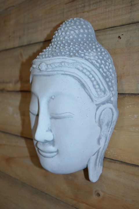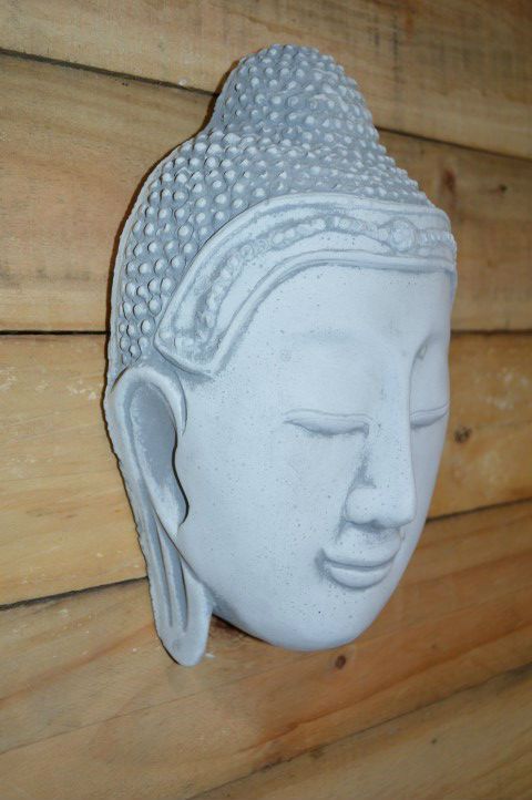 Creëer een oase van rust en spiritualiteit met dit betonnen Shiva Boeddha masker voor aan de muur.