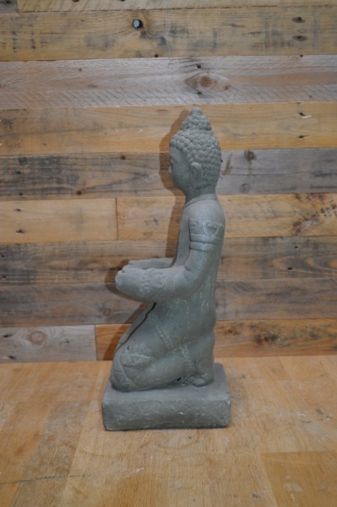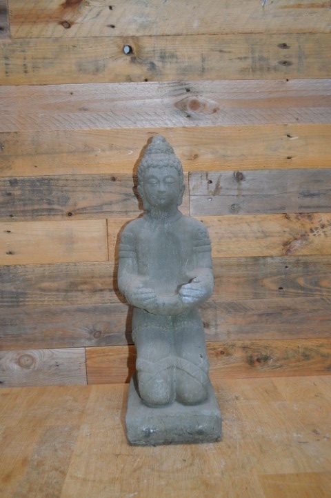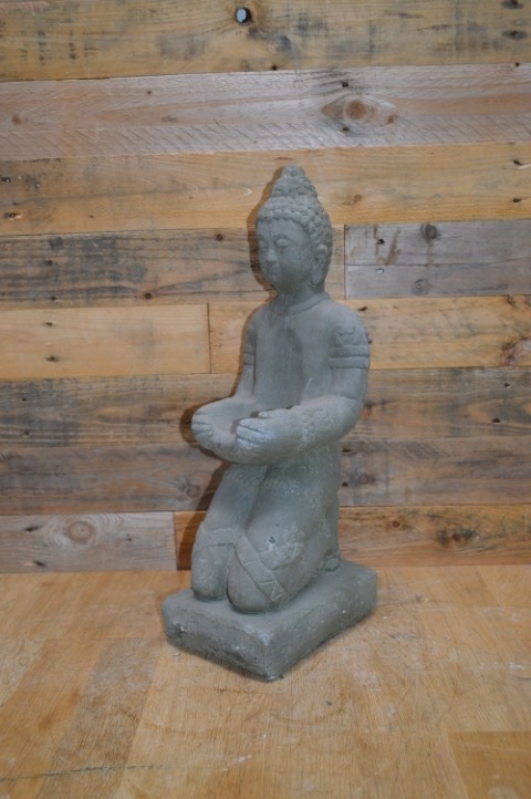 Een prachtig betonnen beeld van Shiva in knielende houding dat meteen de aandacht trekt. Ideaal voor liefhebbers van oosterse kunst en spirituele decoratie.