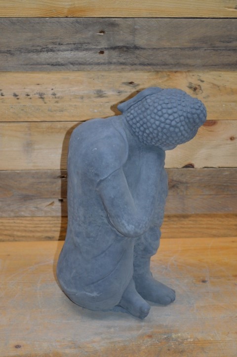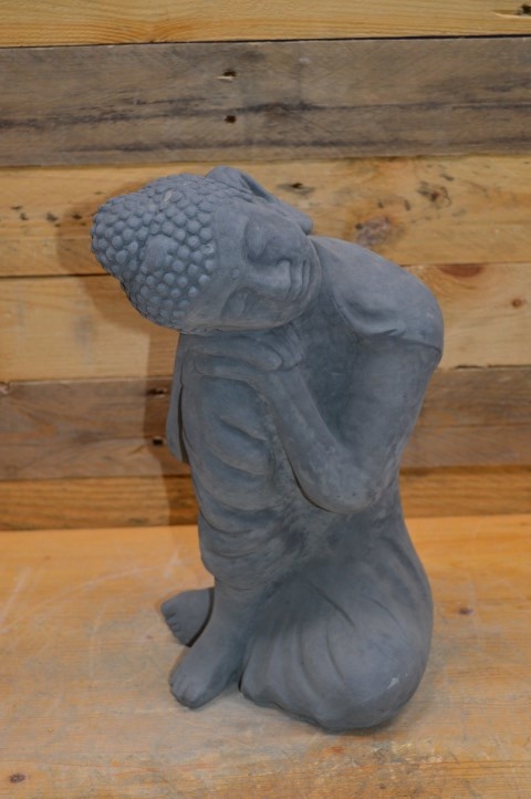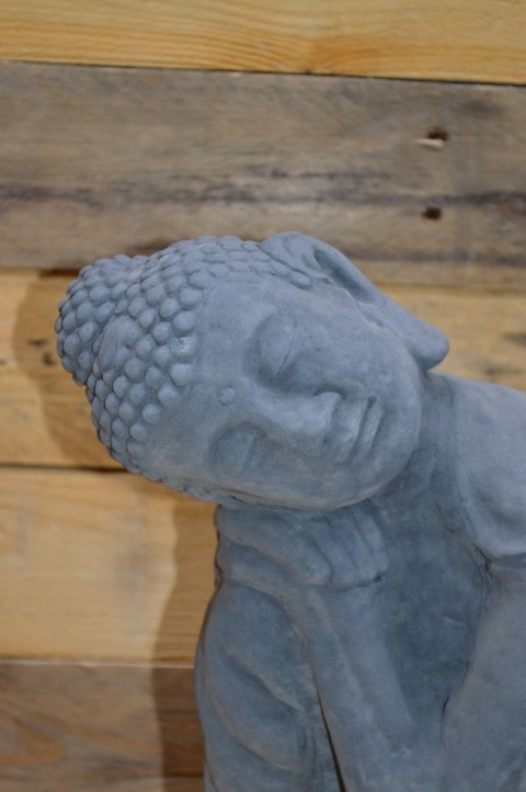 Betonnen beeld Shiva Boeddha slapend – Deze vrouwelijke Shiva Boeddha van beton rust met haar hoofd op haar knie en straalt sereniteit en kalmte uit. De zachte vormen geven het beeld een vriendelijke, vrouwelijke uitstraling.