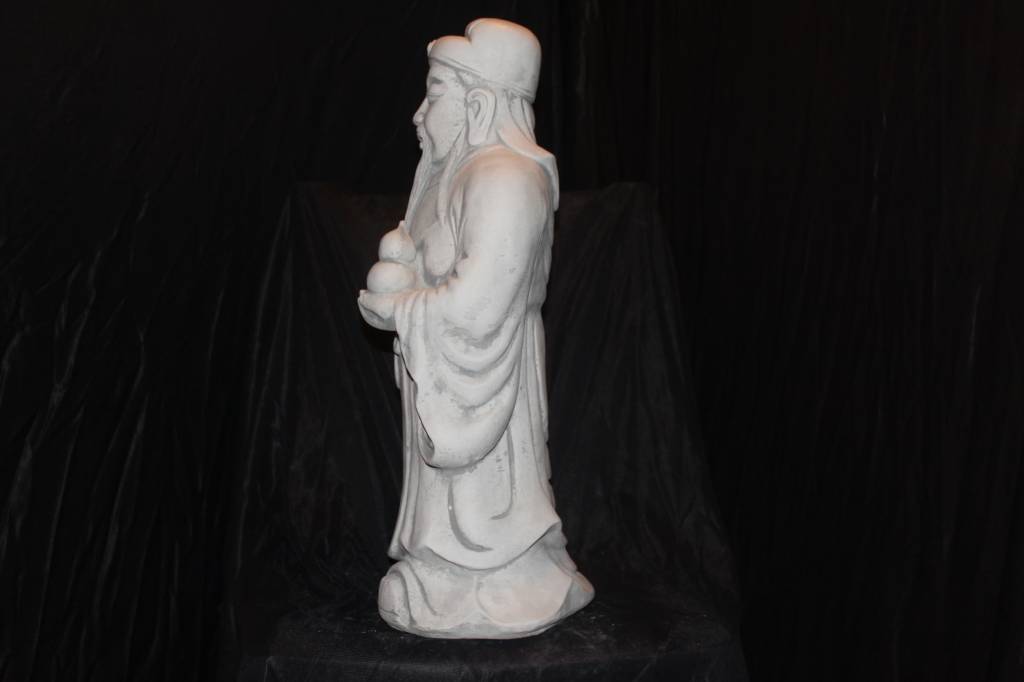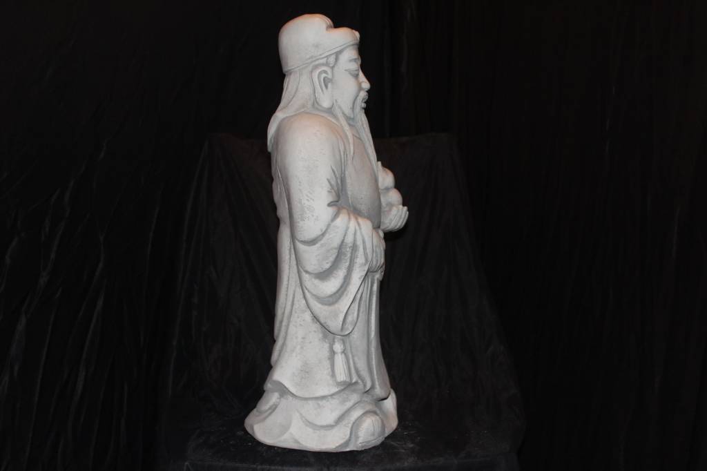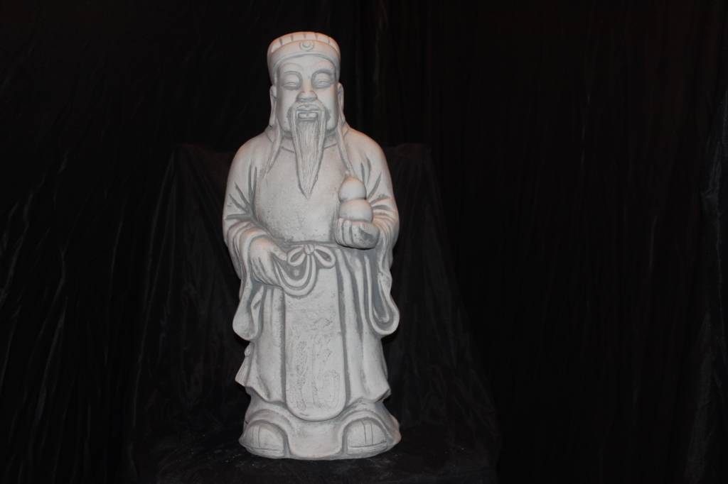 Dit betonnen beeld van de Chinese geluksgod Shou Xing symboliseert een lang, gezond en gelukkig leven. Hij is te herkennen aan zijn lange voorhoofd, staf en perzik van onsterfelijkheid. Samen met Fu Xing en Lu Xing vormt hij de bekende drie-eenheid van Chinese geluksgoden. Dit beeld is met oog voor detail gegoten in beton en geschikt voor plaatsing binnen of buiten. Of je hem nu naast de voordeur zet of bij een rustig hoekje in de tuin, hij zorgt voor een gevoel van rust en welzijn.