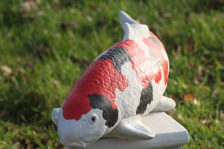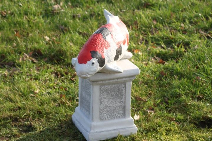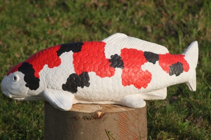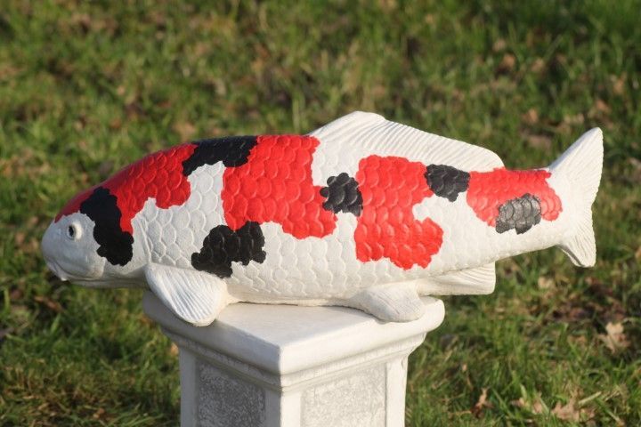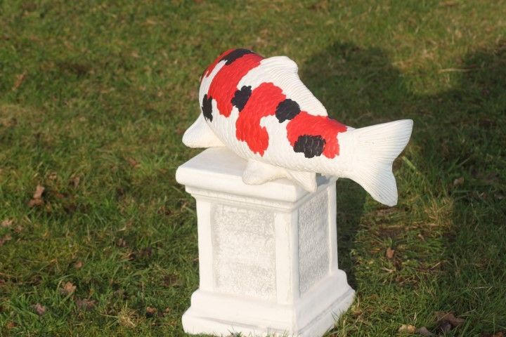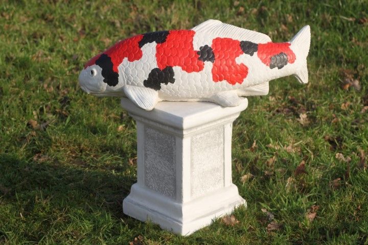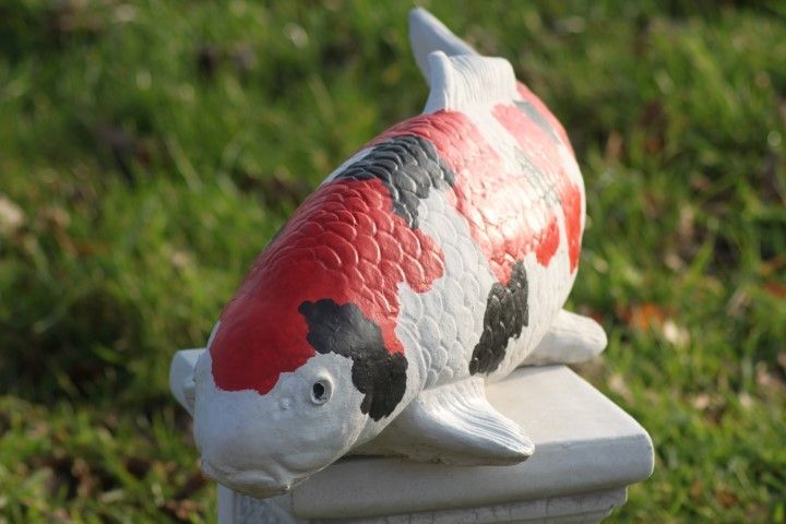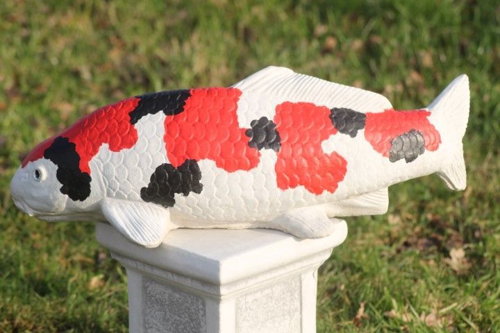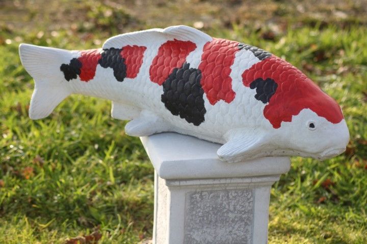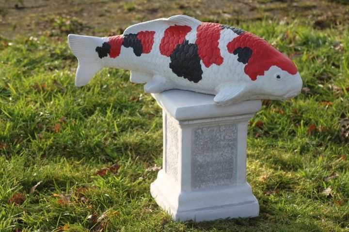 De Showa koi is rood, zwart en wit en ontstond in Japan tijdens de Showa Periode. Dit betonnen beeld is een perfecte decoratie voor uw waterpartij en wordt geleverd zonder sokkel, die apart te bestellen is.