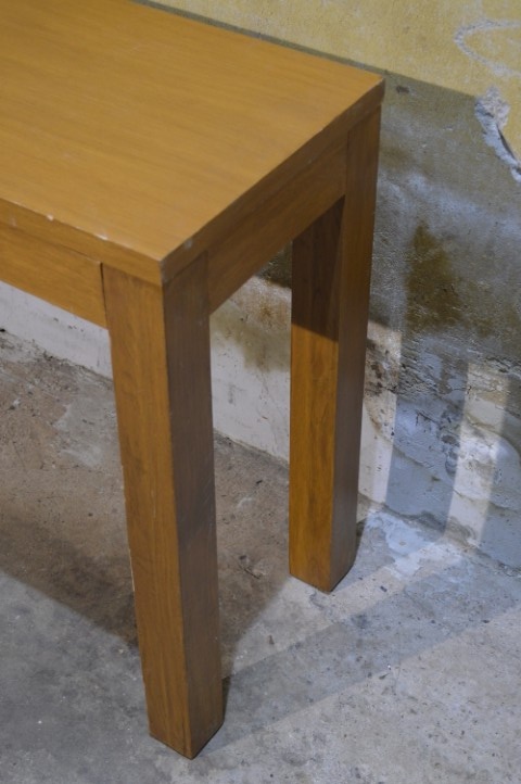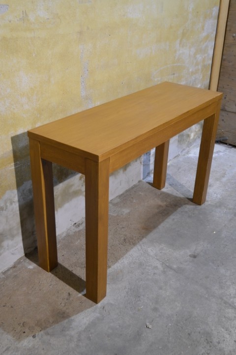 De natuurlijke houtkleur en het eenvoudige ontwerp maken hem geschikt voor zowel moderne als landelijke interieurs, ideaal voor in de hal of achter een bank.