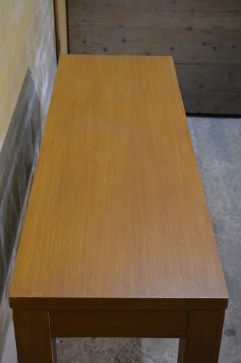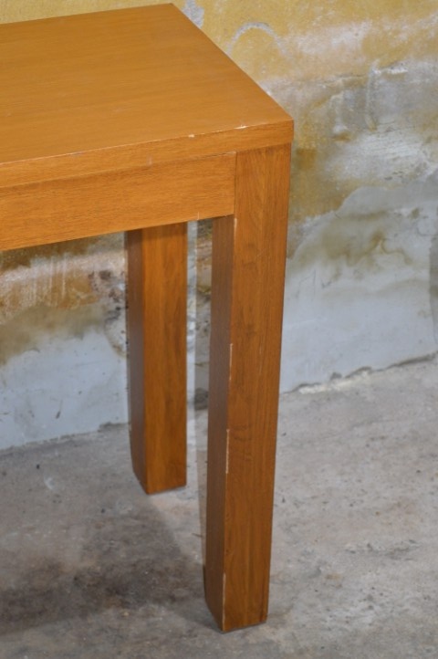 De sidetable vertoont gebruikssporen en de poten zitten los.