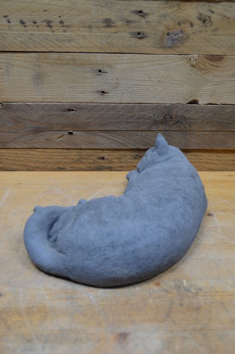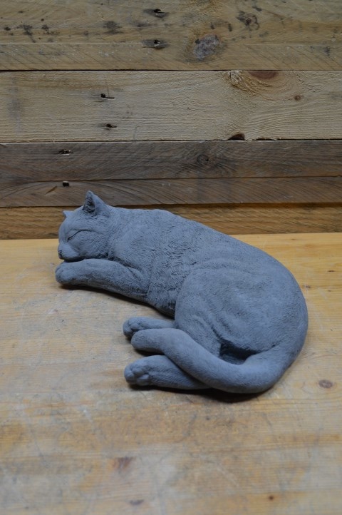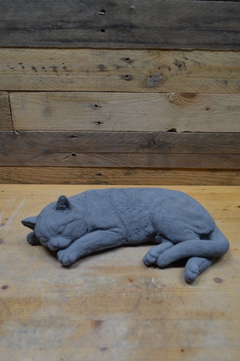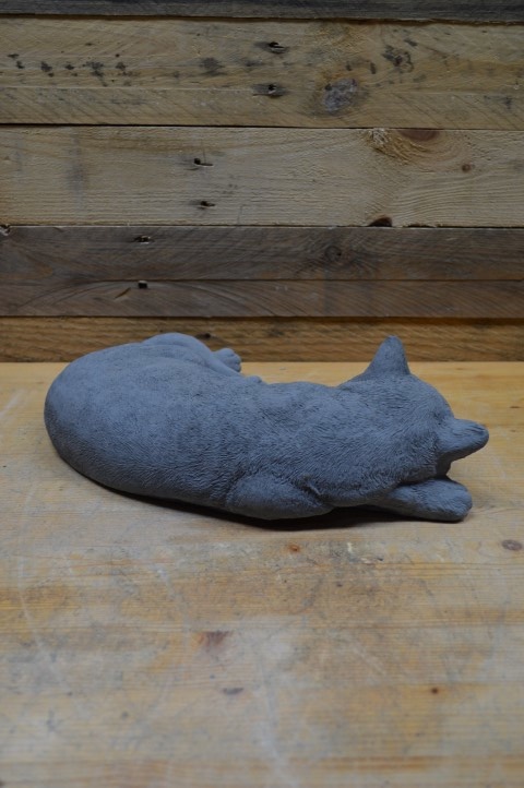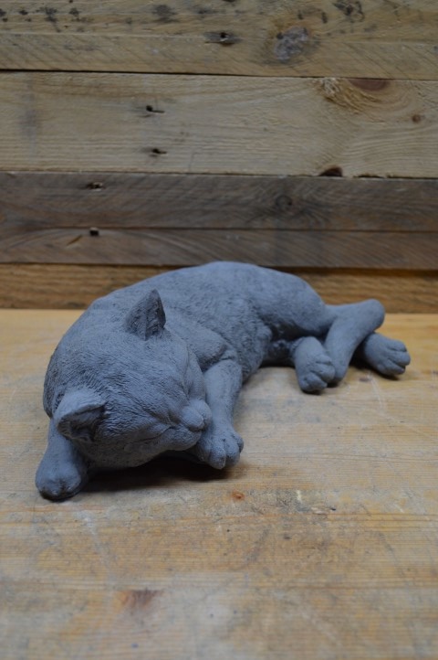 Betonnen beeld grote slapende kat – Deze grote betonnen kat ligt vredig te slapen en brengt rust en gezelligheid in huis of tuin. Dankzij het duurzame beton is het beeld geschikt voor zowel binnen als buiten.