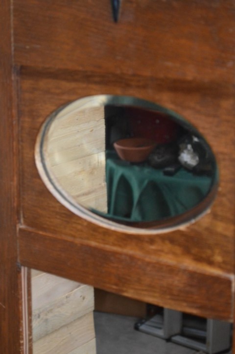 De spiegel heeft lang in een hal gehangen en heeft daardoor gebruikssporen opgelopen zoals kleine weerplekjes in de zilverlaag.