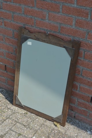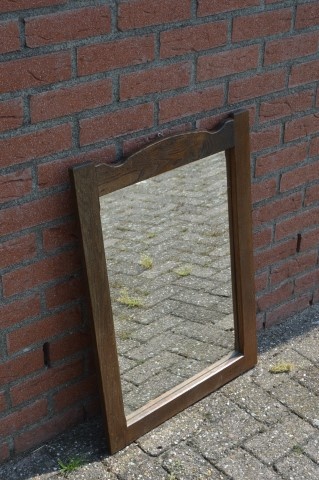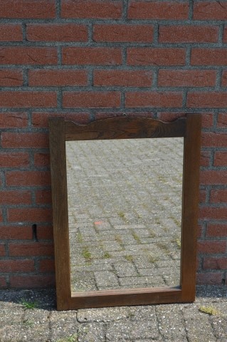 Stijlvolle rechthoekige spiegel van donker eikenhout. Perfect als wanddecoratie of praktische opmaakspiegel in huis.