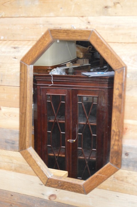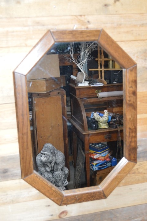 Deze mooie spiegel met donker eiken 8-kantige lijst is een sierlijke wanddecoratie waarmee u eenvoudig een saaie muur in de gang, woonkamer of slaapkamer op kunt fleuren.