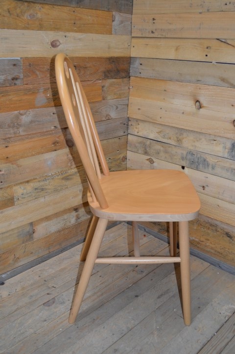 Met deze mooie spijlenstoel van beukenhout heeft u een eenvoudige keukenstoel die met zijn klassieke uitstraling ook goed past in de eetkamer of slaapkamer. Deze oude stoel is erg stevig dankzij het houten frame met dwarsspijlen en ziet er bovendien in vrijwel ieder interieur prachtig uit.