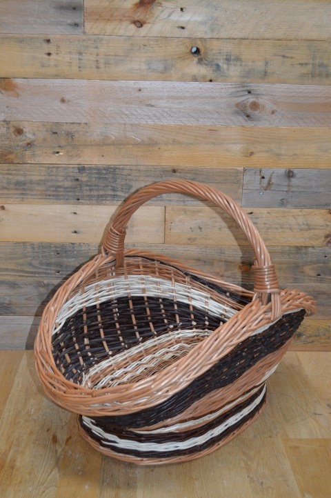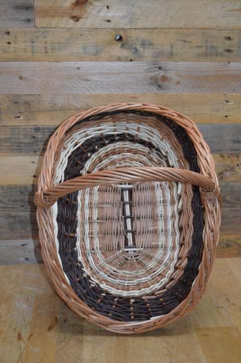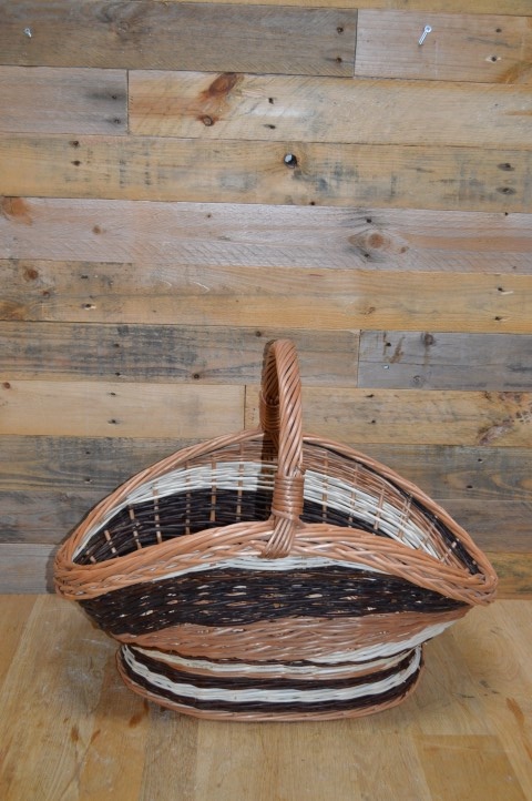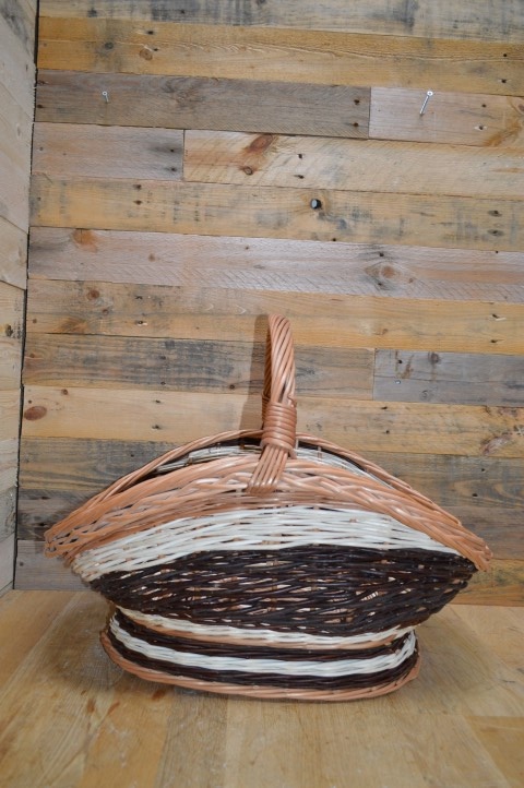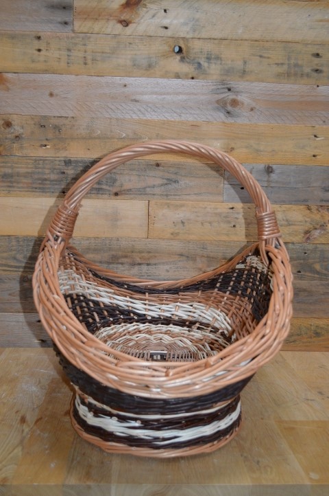Deze boodschappenmand is gevlochten in 3 kleuren wilgenteen. Uiterst duurzame en mooie mand om mee de groententuin in te gaan of pruimen mee te gaan plukken. De prachtige grote driekleurige mand met handvat is natuurlijk ook ideaal om te gebruiken als decoratie voor binnen en buiten.