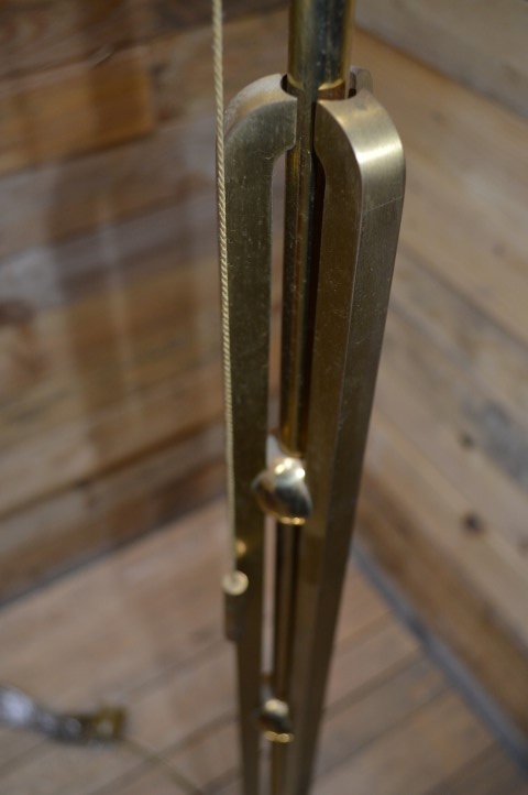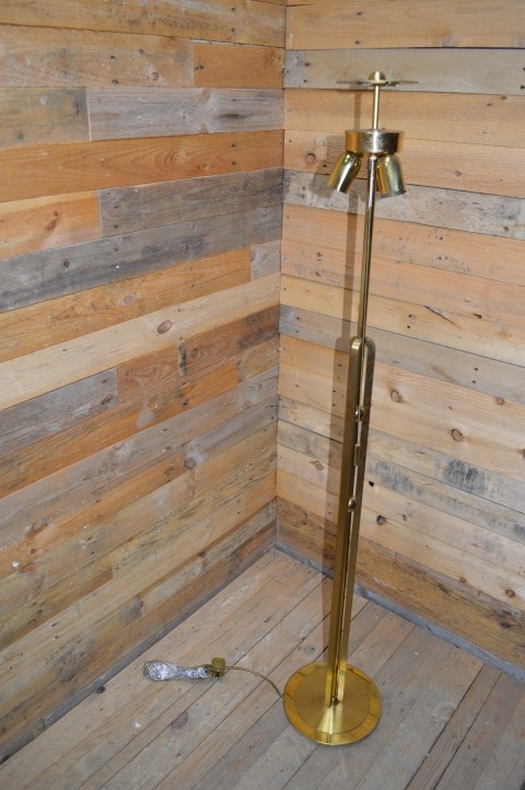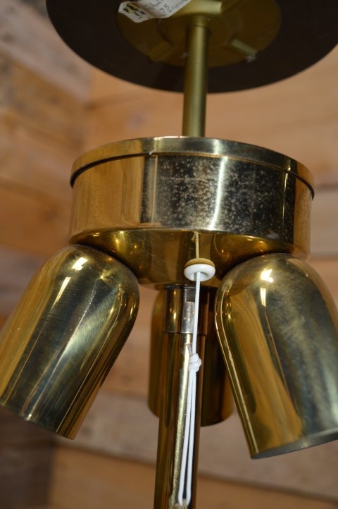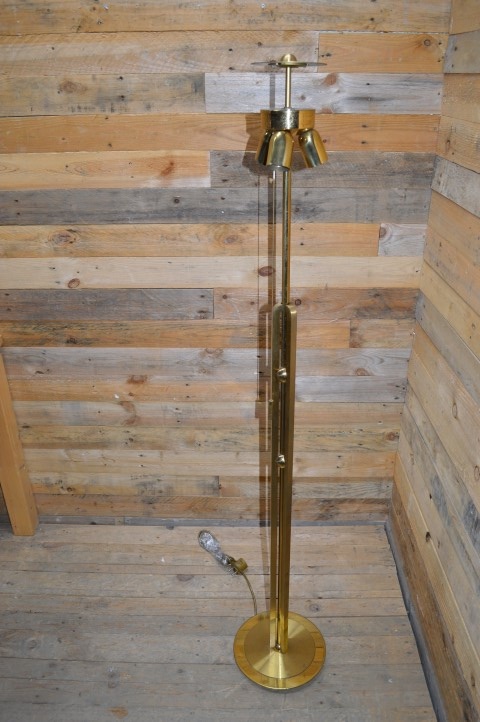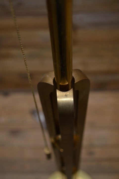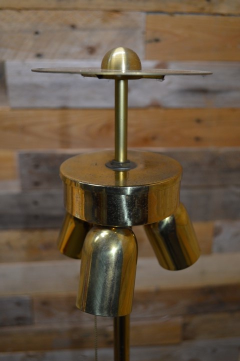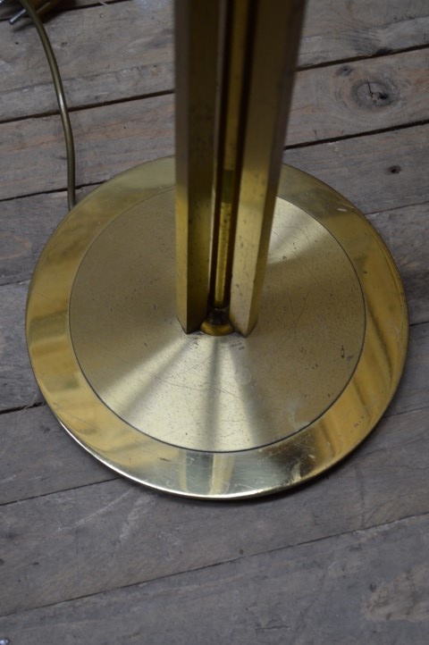 Prachtige sierlijke vintage schemerlamp / vloerlamp met zware messing voet uit de jaren 70 is een lamp in de empire stijl. Er kunnen drie lichtbronnen in en hij geeft een prachtig sfeerlicht.