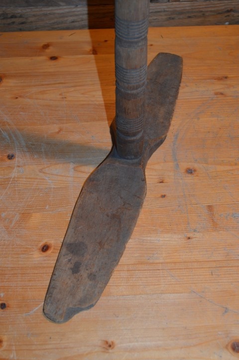Antieke houten moestuin stamper met bovenop een punt om gaatjes te prikken voor de zaden en om de gaten dicht te maken gebruik je het stamp gedeelte. De steel is sierlijk bewerkt en ambachtelijk gemaakt. Echt landelijk boeren gereedschap wat tegenwoordig word gebruikt om sierlijk aan de wand te hangen als wanddecoratie.