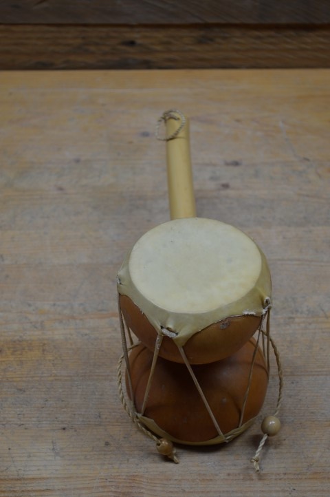 Deze mooie decoratieve stoktrommel, ook wel vaak handtrommel of Monkey Drum genoemd, werd vroeger veel als percussie instrument gebruikt en is nu vooral ideaal om te gebruiken als wanddecoratie.