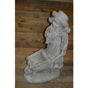 Dit meisje met haar kruiwagen is een prachtige plantenbak om uw tuin mee aan te kleden.