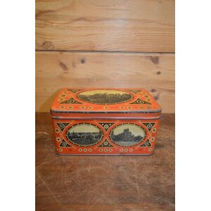 Sfeervol vintage koektrommeltje uit de jaren 30 met litho’s van Arnhem. Authentiek oranje blikje, leuk als decoratie of verzamelobject!
