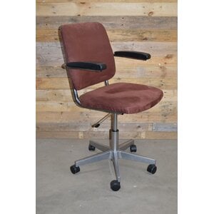 Stoer en retro! Jaren 70 bureaustoel met buizenframe en zwenkwielen. In hoogte verstelbaar en ideaal als design kantoorstoel.