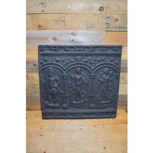 Deze gietijzeren haardplaat heeft de voorstelling van 3 personen die de drie hoekstenen van de samenleving uitbeelden. De kracht, de macht en de liefde.