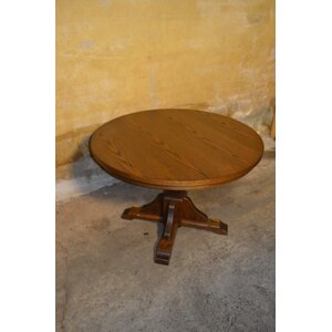 Ronde eiken eettafel uit de jaren 60, deels massief en deels gefineerd. War...