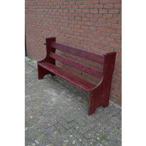 Massief houten kerkbank in een donkere kleur wijnrood. Een bank waar je verrassend comfotabel op kunt zitten. Vaak gebruikt als buitenbank.