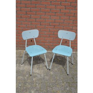 Mooie set van 2 retro stoeltjes met teakhouten zitting en rugleuning. Deze stoelen zijn ideaal om te gebruiken als keukenstoel en staan ook goed in de eetkamer.