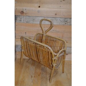 Tijdschriftenrek van rotan uit de jaren 60, met een handgreep in het midd...