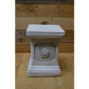 Lage betonnen zuil met sierlijke rozetten aan de zijkanten. Ideaal als sokke...