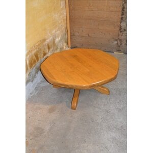 Ronde eikenhouten eettafel jaren 60