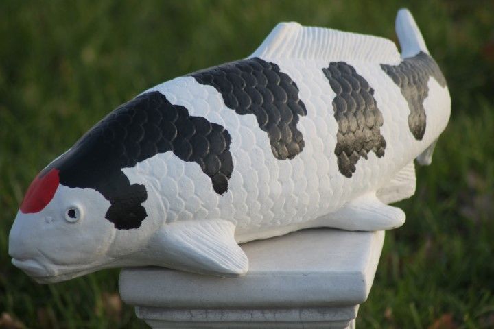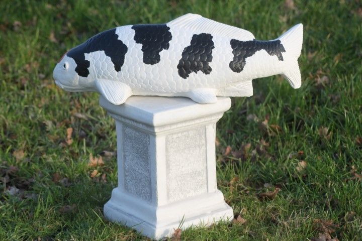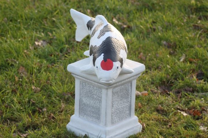 De Tancho Showa heeft rood, zwart en wit, met een ronde rode markering op het hoofd. Het betonnen beeld is een perfecte decoratie voor uw waterpartij en wordt geleverd exclusief sokkel, die apart te bestellen is.