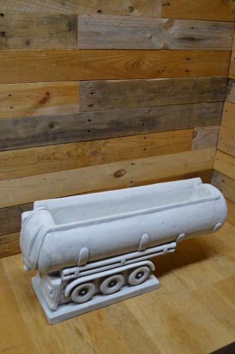 Tankwagen bloembak beton is een opvallende en unieke bloembak in de vorm van een tank- of bulkwagen. Deze robuuste tuinversiering combineert een industriële stijl met functionaliteit. De betonnen bak is geschikt voor bloemen, planten of zelfs kleine struiken. Dankzij het stevige materiaal (gietsteen) is de bloembak weerbestendig en geschikt voor buitengebruik het hele jaar door. Een echte blikvanger voor iedereen die van een stoere tuin houdt of iets bijzonders zoekt voor op het terras, bij een oprit of in een moderne siertuin.