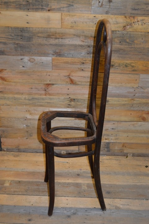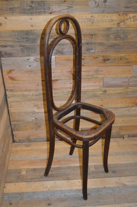 Authentieke houten Thonet dames stoel met hoge zitting en hoge rugleuning. Ontwerp & uitvoering Thonet, Wenen / Oostenrijk Met echtheidskenmerk gemerkt (foto) Hoogte van de zitting 54,5 cm.
