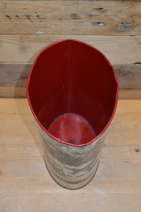 Deze oude prullenbak heeft wel in de loop der tijd gebruikssporen opgelopen, zoals kleine deukjes, maar is verder nog in goede staat en zorgt voor een echte blikvanger in huis die gegarandeerd veel jeugdsentiment teweer brengt.