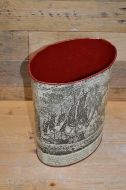 Deze vintage prullenbak, met een zeeslag als opdruk, van Tomado is ideaal voor op de slaapkamer of kantoor maar kan daarnaast ook heel goed als nostalgische decoratie gebruikt worden. Erg herkenbaar voor mensen die in de jaren 70, 80 en 90 zijn opgegroeid.