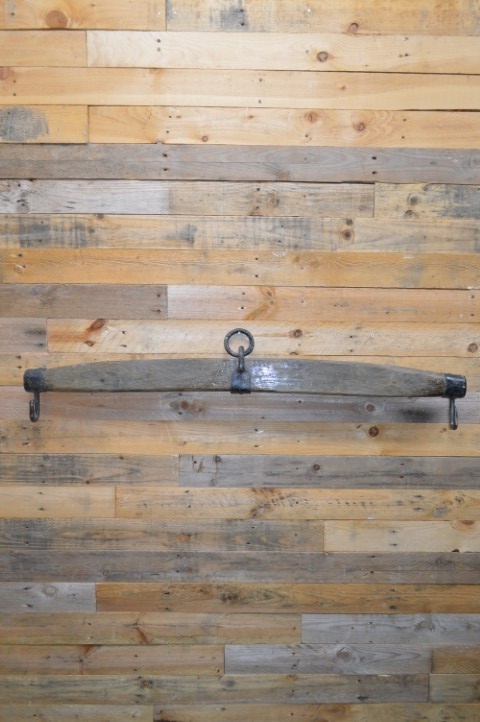 Dankzij de metalen ogen die zich aan beide uiteinden van de balk bevinden is deze agrarische decoratie gemakkelijk aan de muur op te hangen, waardoor deze houten trekstang een erg leuke aanvulling op het interieur wordt.