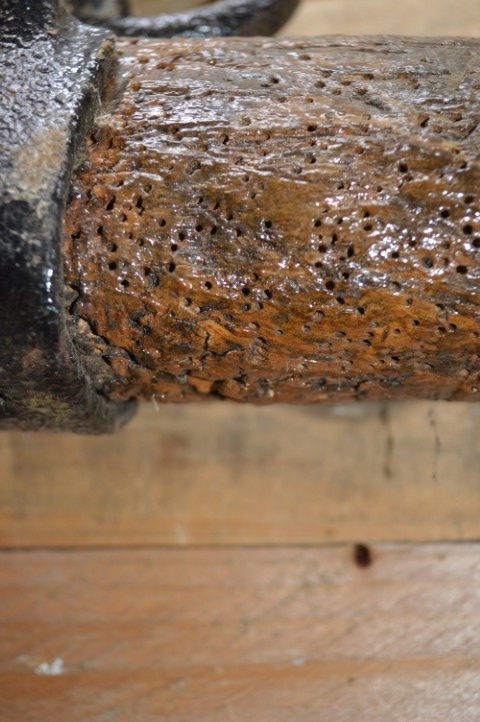 De trekbalk voor paardenwagen is een authentiek stuk landelijke nostalgie. Deze houten balk heeft zichtbare gebruikssporen en veel houtwormgaatjes, waarvoor hij tweemaal behandeld is. Hij is afgewerkt met een blanke laklaag en daardoor direct geschikt als rustiek decoratiestuk in huis, aan de muur van een schuur of als blikvanger in een landelijke tuin. Een karaktervolle tweedehands vondst met geschiedenis.