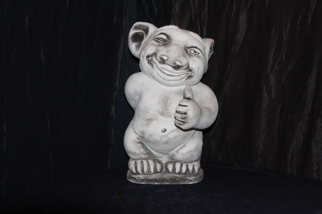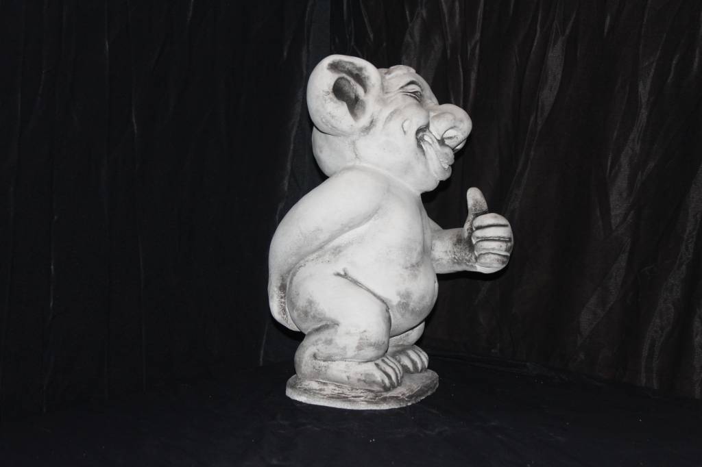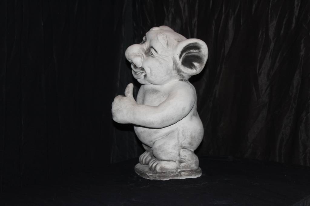 Betonnen beeld trol met opgestoken duim