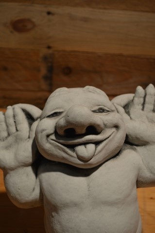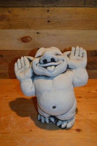 Breng een glimlach in de tuin met deze betonnen beeld lachende trol.