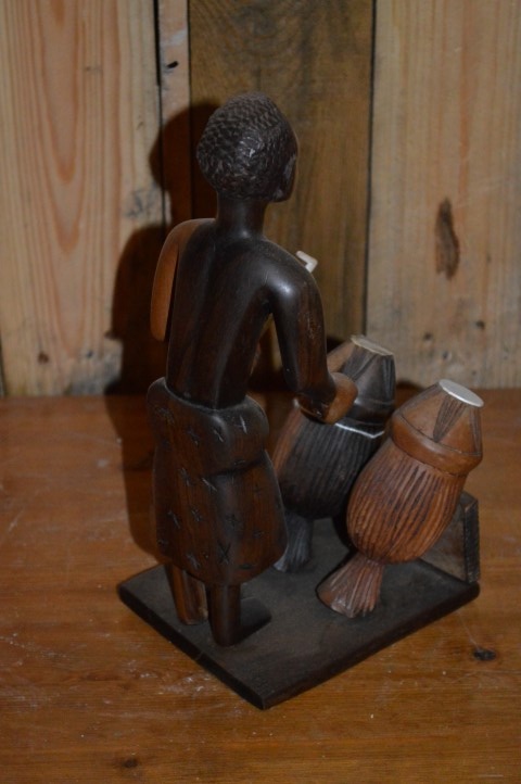 Het houten beeldje trommelaar Ghana toont een sierlijke muzikant zittend met zijn traditionele drums. Dit authentieke decoratieve object komt uit Ghana en draagt sporen van een lange reis over de halve wereld. De gebruikssporen geven het karakter en maken het tot een uniek kunstwerkje. Prachtig als etnisch accent in je interieur of als gespreksonderwerp op een plank of vensterbank.