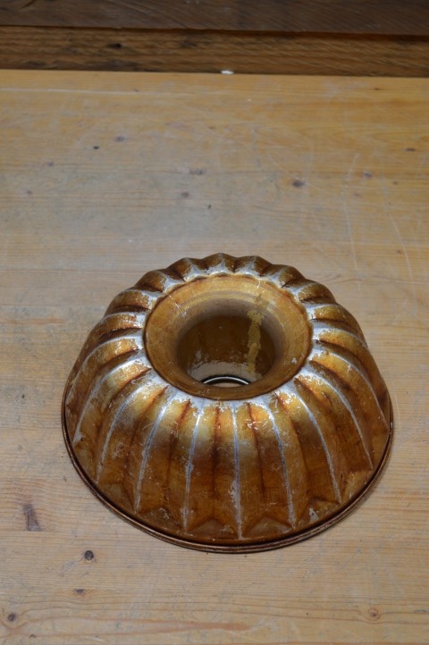 De metalen tulbandvorm heeft een opvallend patroon aan de buitenzijde overgehouden aan de vele tulband cakes gebakken door de vorige eigenaar waardoor deze vorm ideaal is als decoratieve tulband bloembak in huis, maar ook goed omgekeerd neergezet kan worden of als wanddecoratie gebruikt kan worden.
