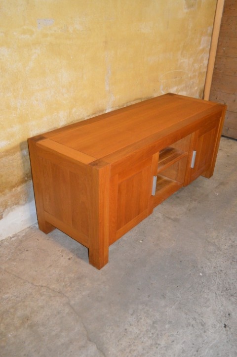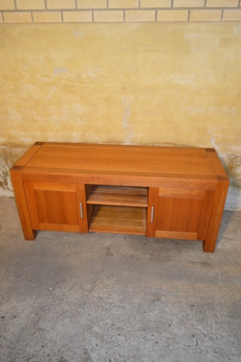 Een prachtig TV meubel in blank eiken dat direct warmte en rust in uw woonkamer brengt.