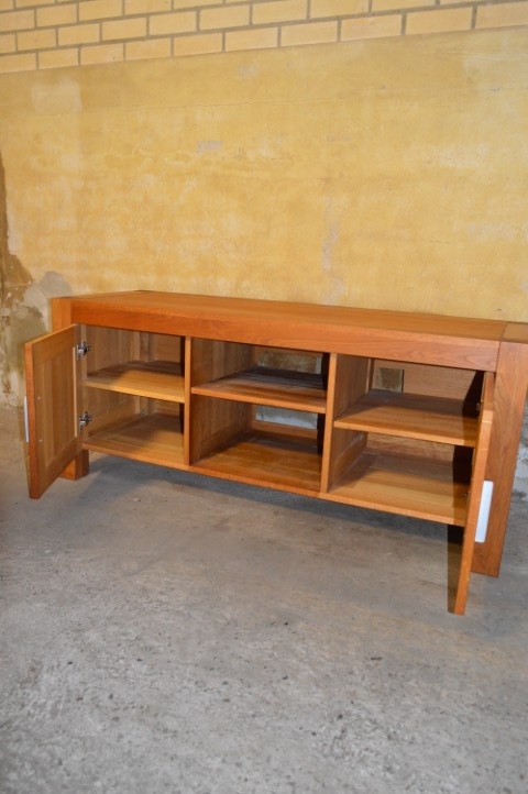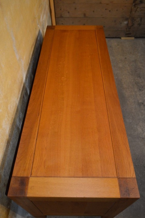 Dit meubel verkeert in uitstekende staat en is een echte blikvanger zonder overheersend te zijn. Het blanke eikenhout heeft een warme, natuurlijke uitstraling en laat de kwaliteit van het materiaal goed zien. Dankzij de slimme vakverdeling met legplanken achter de kastdeurtjes en een open middenvak biedt het meubel voldoende ruimte voor apparatuur, accessoires en bekabeling. Praktisch én stijlvol. Het meubel heeft nauwelijks gebruikssporen en geen schade. Met een goede boenbeurt met bijenwas kan het hout opnieuw prachtig opfrissen.