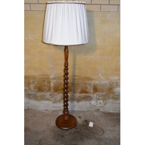 Prachtige vintage eiken vloerlamp met gedraaide massief houten voet en kap. ...
