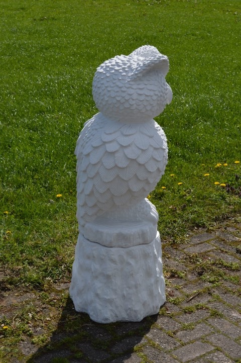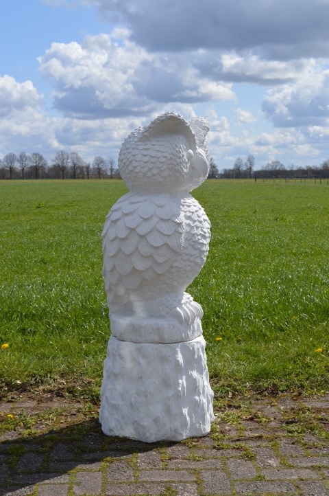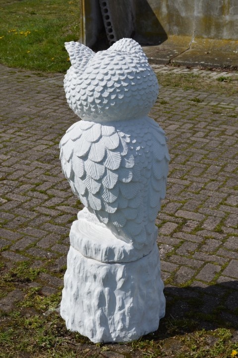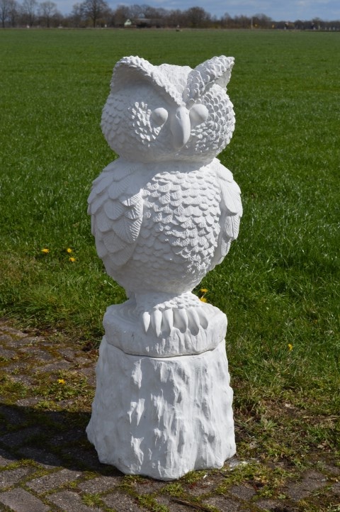 Deze wijze uil van beton komt graag uw tuin opsieren. Het beeld bestaat uit twee delen: een stevige sokkel en een prachtig uitgewerkte uil die daarop prijkt. De details in het verenkleed en de houding van de uil maken dit tot een decoratief en karaktervol tuinbeeld. Of u hem nu plaatst langs een tuinpad of centraal op een gazon, hij trekt ongetwijfeld de aandacht. Gemaakt van weerbestendig beton is dit beeld geschikt voor buiten, maar staat ook mooi binnen bij een rustiek interieur.
