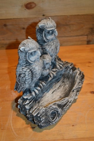 Deze betonnen familie uil op een drinkbakje houdt alles nauwlettend in de gaten en brengt sfeer in uw tuin of op het balkon. Het beeld kan in de winter als vogelvoerbak dienen en in de zomer als drinkbak voor vogels en insecten. Een charmante en onderhoudsvrije decoratie die overal goed tot zijn recht komt.