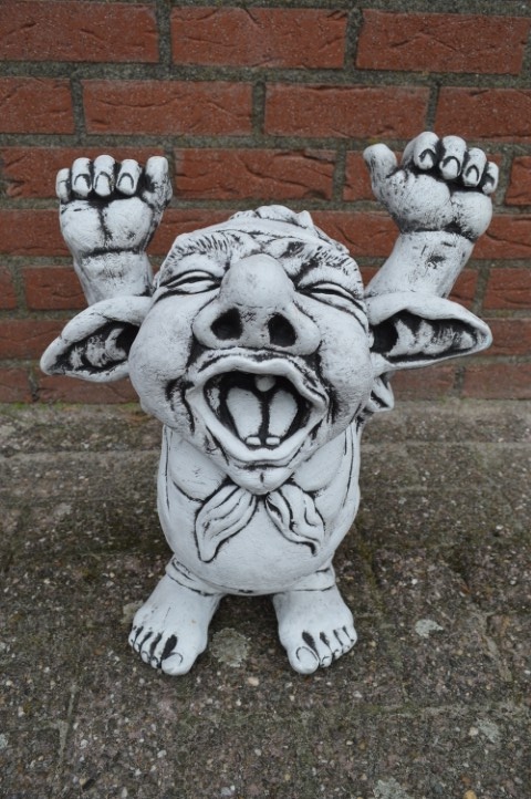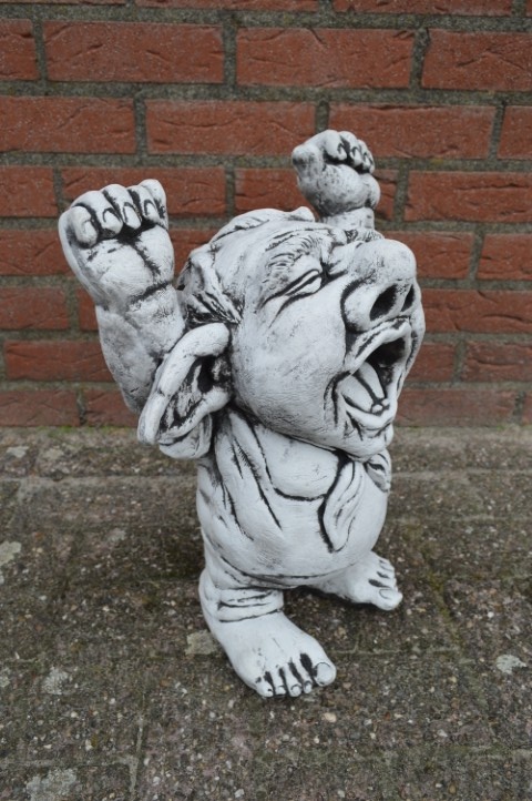 Deze uitrekkende luie gapende trol is een vrolijk betonnen beeld dat direct een glimlach oproept. Het speelse figuurtje strekt zich lekker uit om wakker te worden en straalt het ondeugende karakter uit dat trollen zo geliefd maakt.