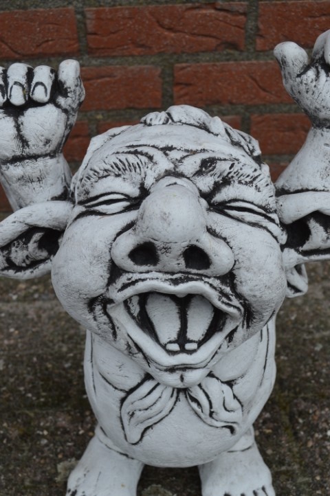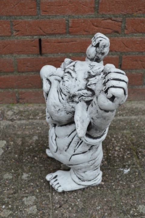 Dankzij het weerbestendige beton is dit beeld zowel geschikt voor binnen als buiten. Perfect als originele tuindecoratie, of als ludiek cadeau voor iemand die wel een opkikker kan gebruiken. Een charmante en speelse toevoeging aan iedere ruimte of tuin.