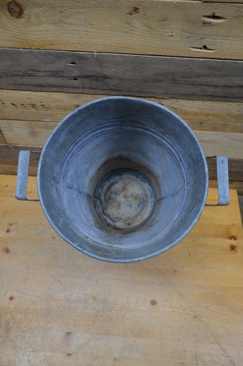 Deze oude verzinkte emmer met handgrepen is ideaal als decoratie in huis maar daarnaast ook erg geschikt voor gebruik als zinken bloemenemmer of plantenemmer.