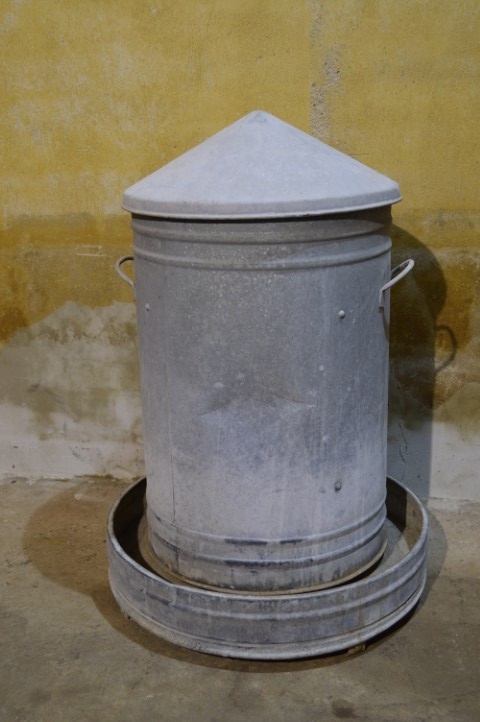 Deze oude zinken voersilo is zowel praktisch als decoratief. De voederton bestaat uit drie delen: de onderste bak, de ton zelf en de deksel. Perfect voor gebruik in de tuin, bijvoorbeeld met bloemen of planten, of als authentiek decoratiestuk. Het meubel vertoont gebruikssporen passend bij de leeftijd, wat bijdraagt aan het karakter en de vintage uitstraling.