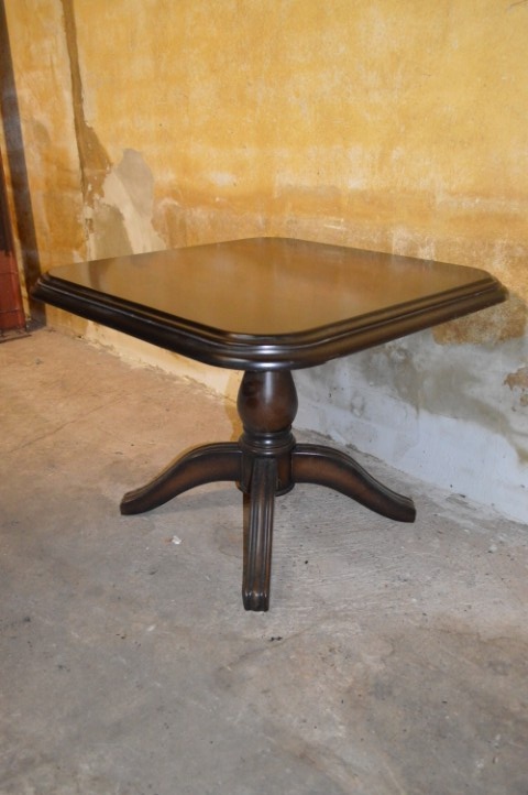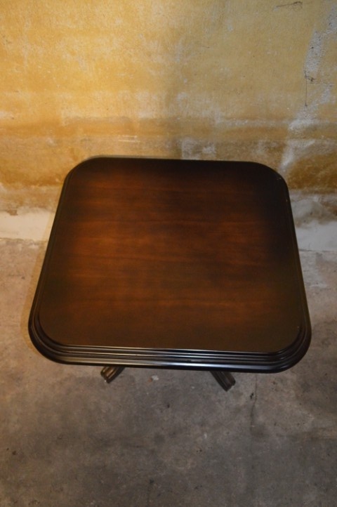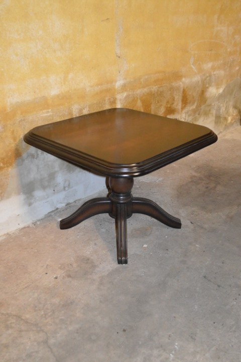 Dit charmante vierkante notenhouten salontafeltje in donker patiné kleur is een stijlvolle en veelzijdige toevoeging aan ieder interieur. Het warme notenhout en de donkere patina geven het tafeltje een karaktervolle uitstraling, waardoor het niet alleen als salontafel, maar ook perfect als bijzettafeltje of plantentafeltje te gebruiken is.