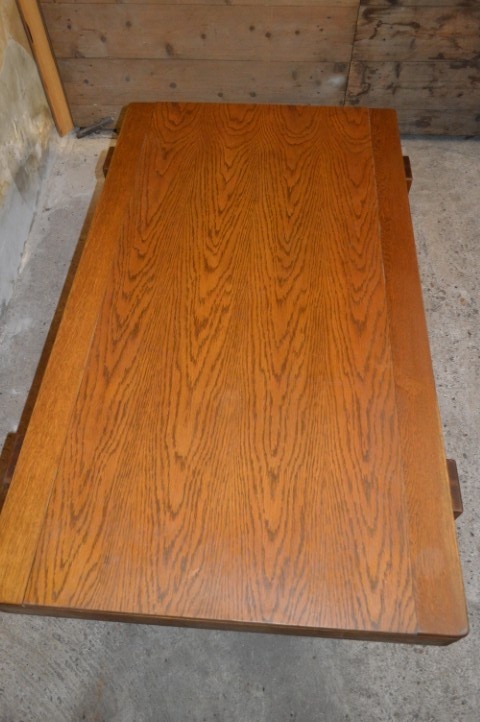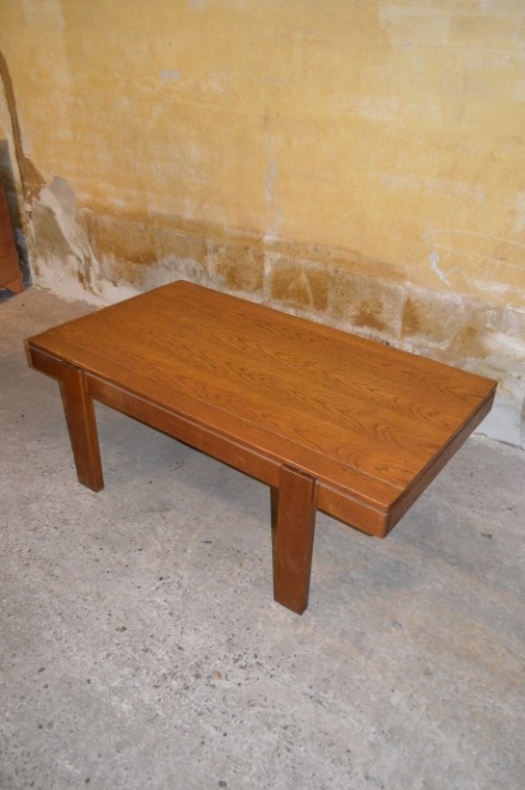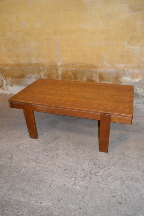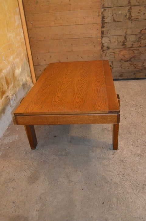 Deze vintage massief eiken salontafel heeft een warm en tijdloos karakter.